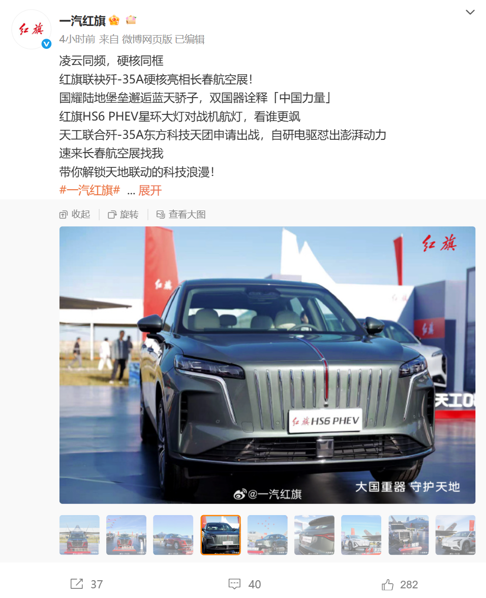 IT之家 9 月 19 日消息,一汽红旗 HS6 PHEV 汽车今天在长春航空展上正式亮相,新车主打家族化设计语言,搭载 1.5T 混动系统。