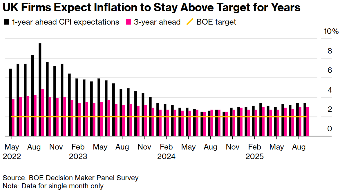 英国企业预计通胀率将在未来数年维持在目标水平以上