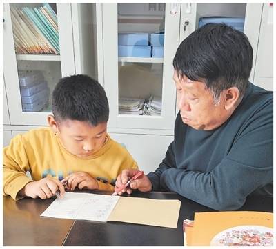 银龄教师李志华(右)在辅导学生。 周兴永摄(人民视觉)