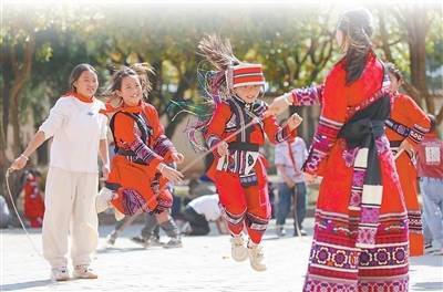 r高校师生也行动起来。迪庆藏族自治州德钦中学的操场上,前来支教的大理大学学生唐晓青正带着同学们练习花样跳绳。自云南省实施体育美育浸润行动计划以来,大理大学的支教志愿者们为迪庆州德钦县、维西傈僳族自治县的孩子们带来了不一样的体育课程。
